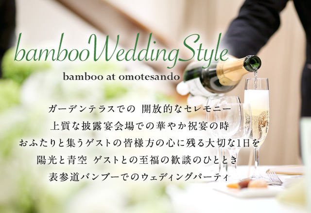 表参道bambooでは、ご見学からご披露宴当日まで専任のプランナー、各分野のプロのアーティスト達がおふたりの挙式・ご披露宴をサポートさせて頂きます。おふたりのご希望をお伺いさせて頂きながら叶える、最良の1日。